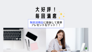 また、説明会にご参加いただいた方には有料級のプレゼントをお渡ししております