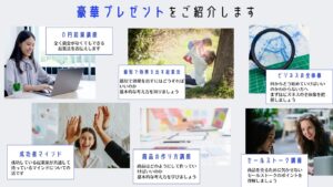 無料説明会に参加していただいた方に、以下の特典をお渡ししています